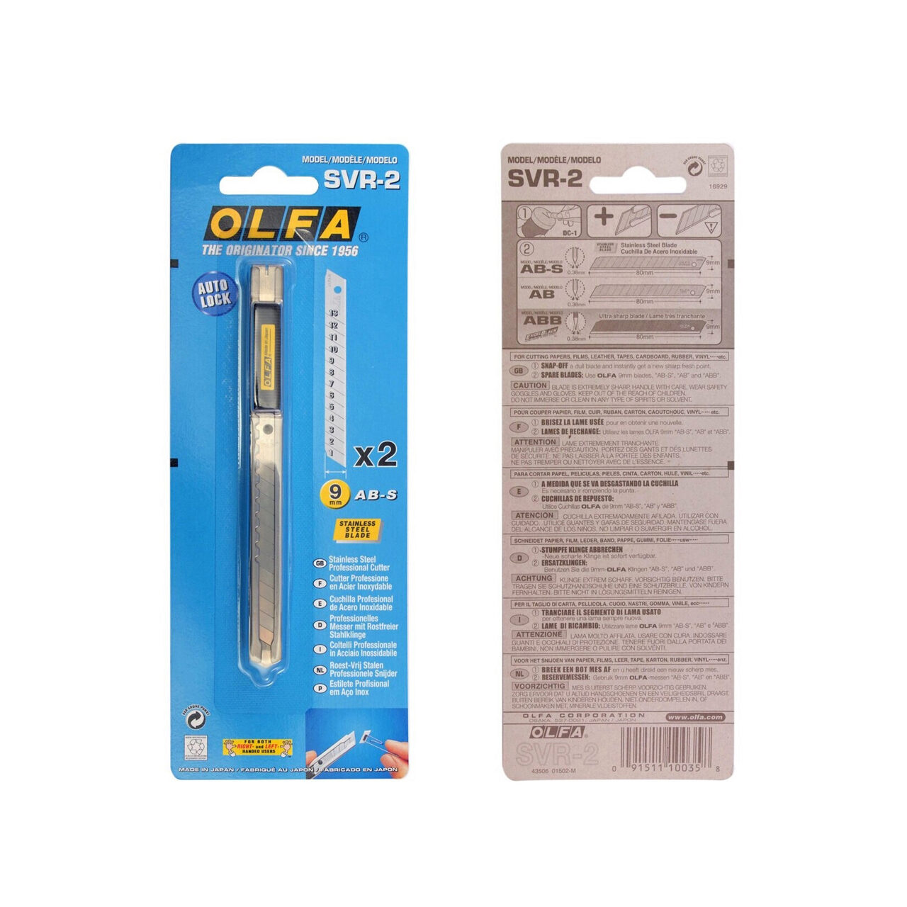 Cuțitul SVR-2 oferă performanța inaltă pe care o așteptați de la lamele OLFA cu cea mai bună funcționare. Este proiectat pentru utilizare in medii umede, rezistand la rugină și la deteriorarea substanțelor chimice. Clipul de buzunar incorporat poate fi folosit și pentru a fixa lama la orice lungime dorită. Corpul din oțel inoxidabil menține lama pentru control complet asupra tăierilor detaliate sau delicate.