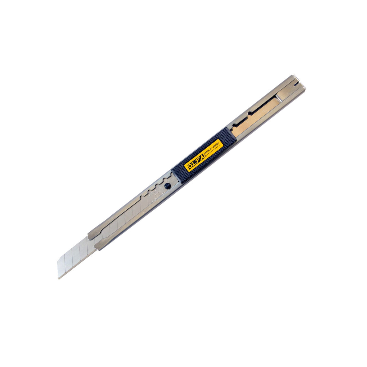 Acceptă toate lamele OLFA de 9 mm, inclusiv: lamele AB Silver Snap, A-SOL Silver Lamele solide și ABB Ultra-Sharp Black Snap Lamele.