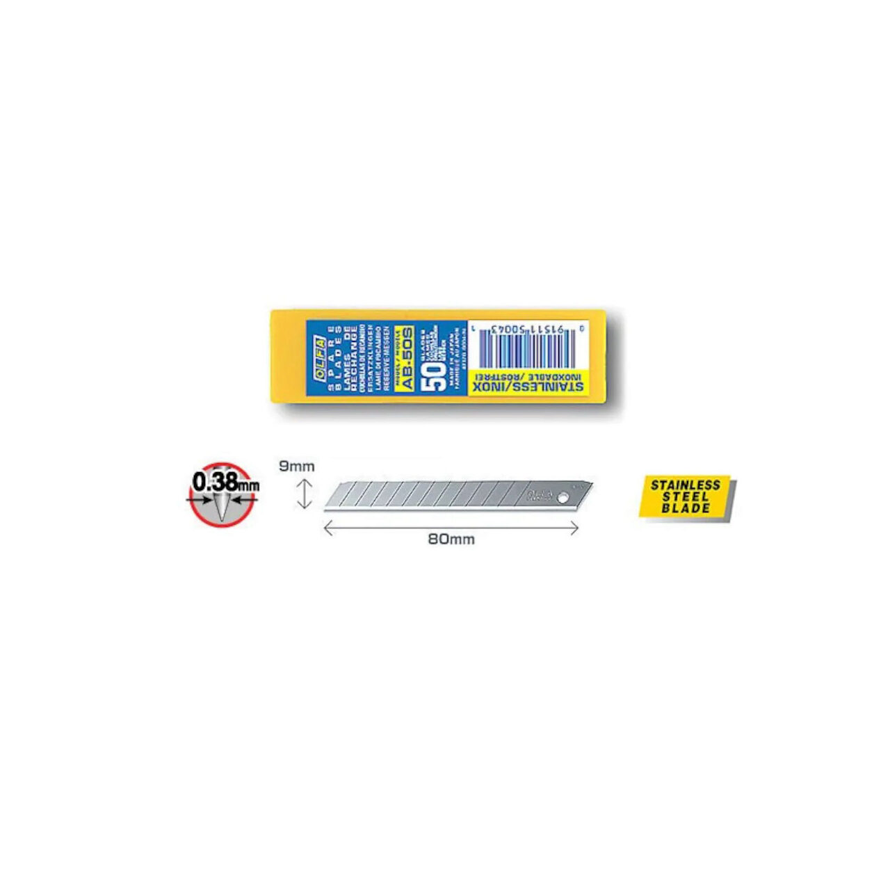 OLFA BLADES-LAME DE 9MM MODEL AB-50S, 50 BUC/SET