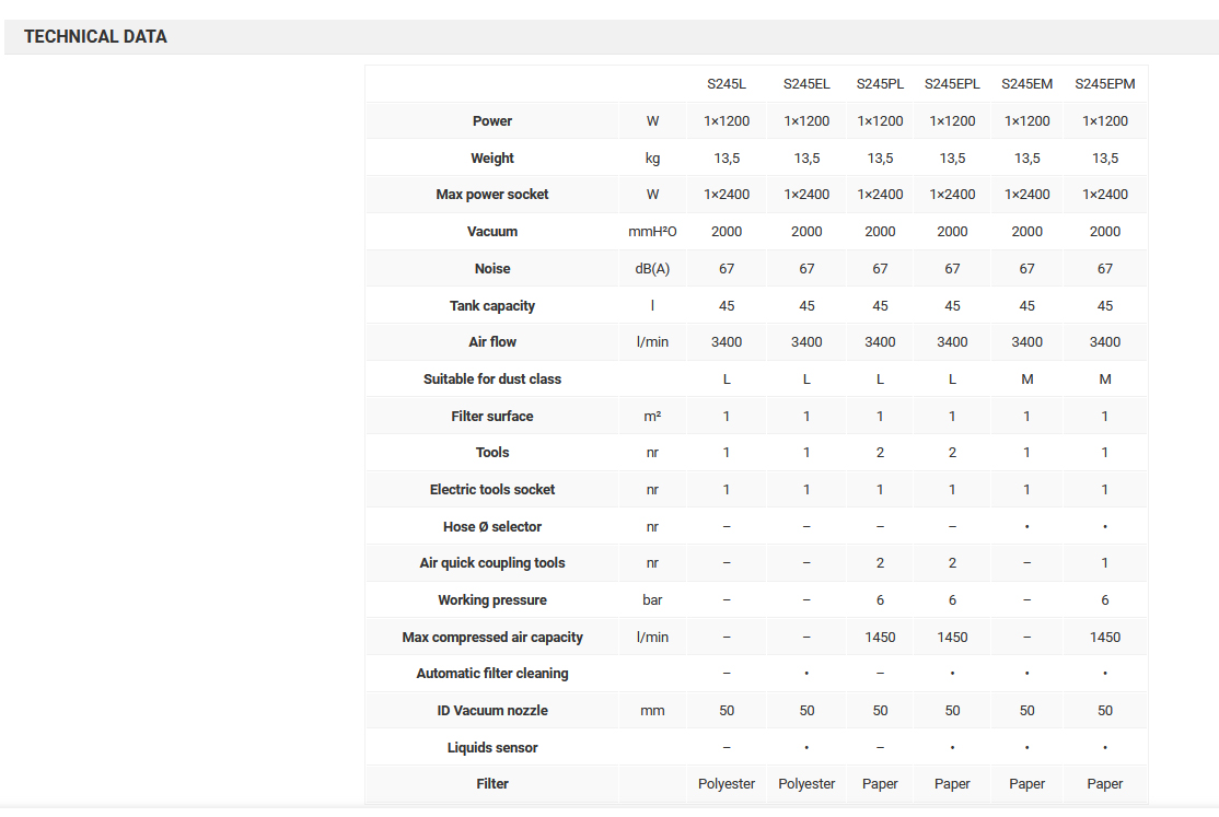 Toate aspiratoarele, atat in varianta L cat si in varianta M, sunt furnizate cu un filtru realizat din materiale certificate pentru extractia de praf clasa M.
