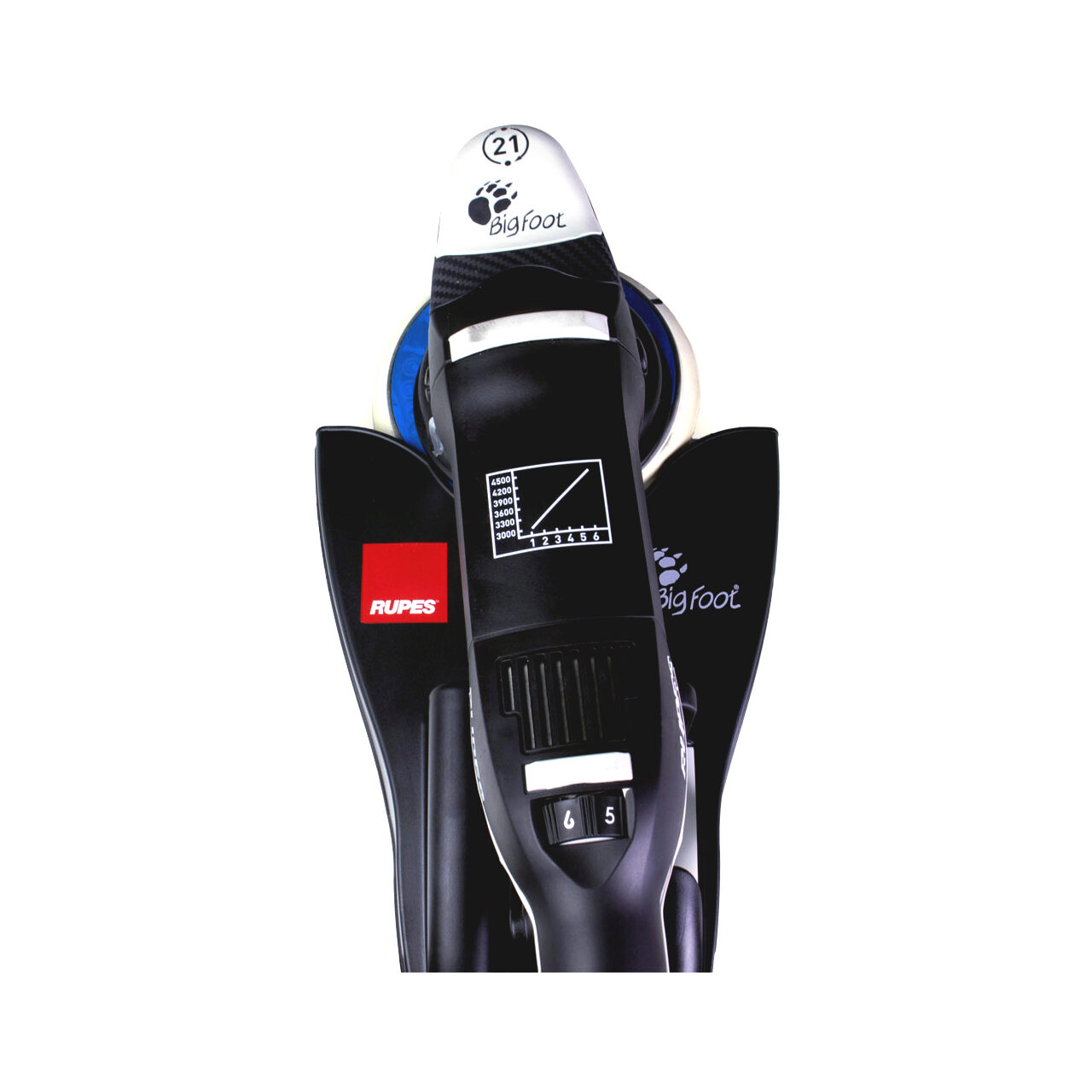 Este compatibil cu toata gama de masini BigFoot si cele pneumatice . Este facut dintr-un plastic usor, noul suport poate fi prins pe perete sau metal si iti ofera protectie pentru tine si pentru masina ta favorita de polishat.