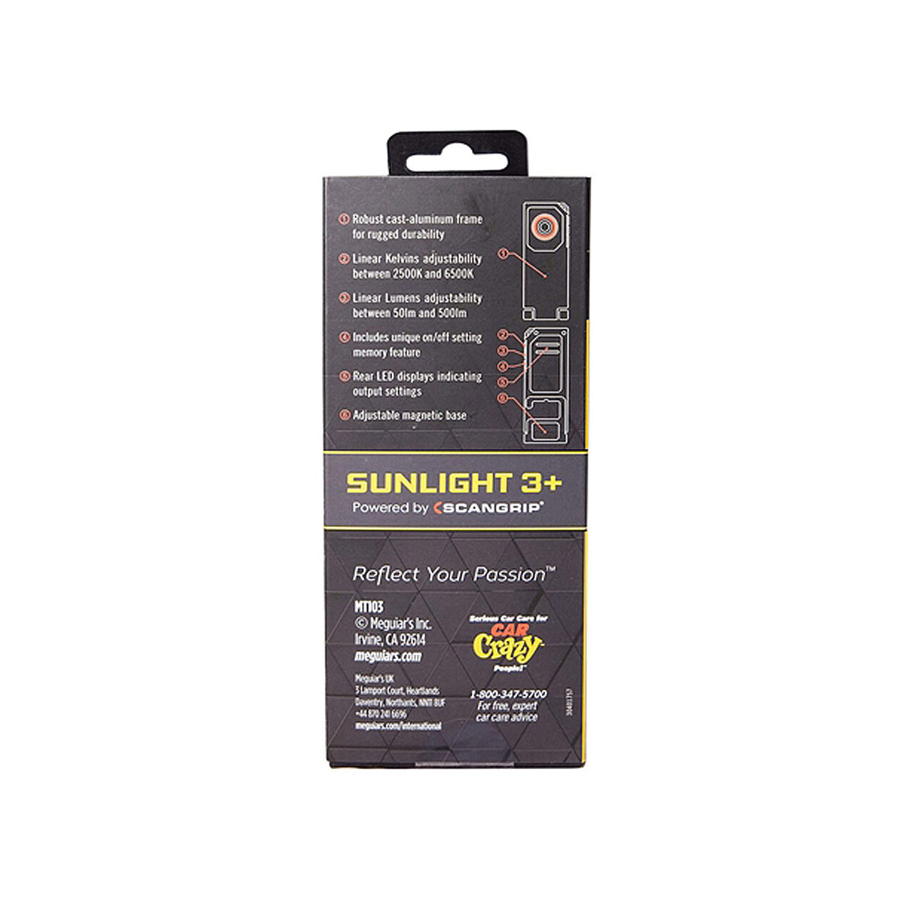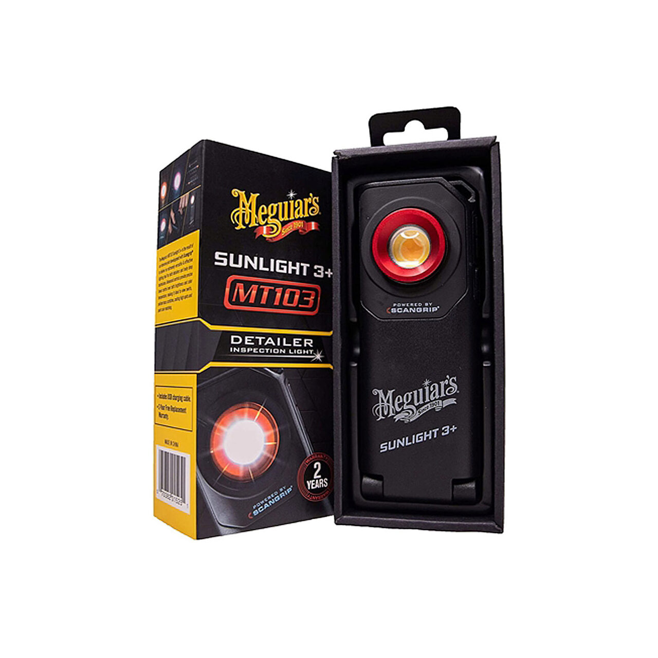 Meguiar’s MT103 Sunlight 3+ este un instrument interesant și eficient obligatoriu pentru orice detalier care dorește să inspecteze amănunțit vopseaua pentru a se asigura că nu are zgarieturi și defecte. Această lampă de inspecție a vopselei cu design unic este co-brandată de Meguiar’s & Scangrip și dispune de un comutator de intensitate continuu, exclusiv, separat, atat pentru puterea luminii, cat și pentru temperatura de culoare. Dispune, de asemenea, de o funcție de memorie convenabilă care permite pornirea/oprirea instantanee fără a căuta setări. Indiferent dacă polisati vopseaua inainte de a aplica o protectie sau vă asigurați că nu aveți puncte inalte in timpul aplicării protectie , Meguiar’s MT103 3+ este instrumentul perfect pe care il aveți la indemană!