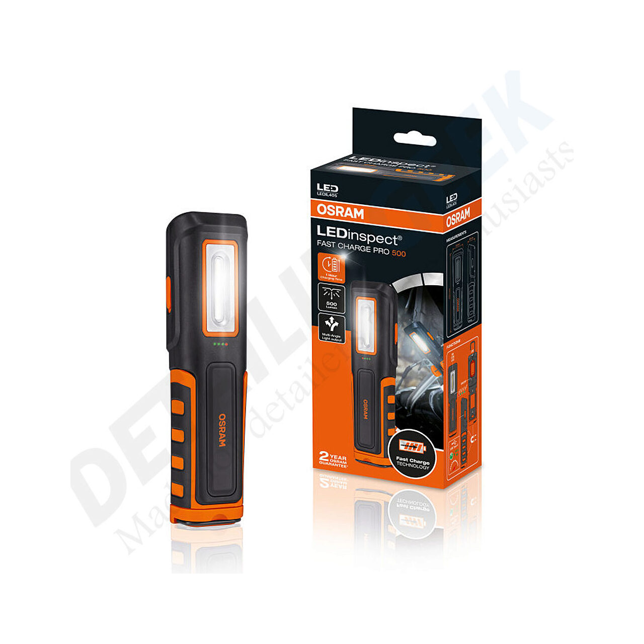 Această lanterna de inspecție de inaltă calitate de la OSRAM este perfectă pentru uz profesional și privat. Cu două funcții de lumină - lumina principală cu pană la 500 lm și funcție de lanternă cu pană la 100 lm, puterea de lumină corespunzătoare poate fi recuperată in funcție de sarcină. in timp ce unele lumini de inspecție durează pană la trei ore pentru a se incărca, funcția de incărcare rapidă a FAST CHARGE PRO 500 duce lampa de la 0% la 100% incărcare a bateriei in doar aproximativ 1 oră, oferind totuși o durată de viață lungă.