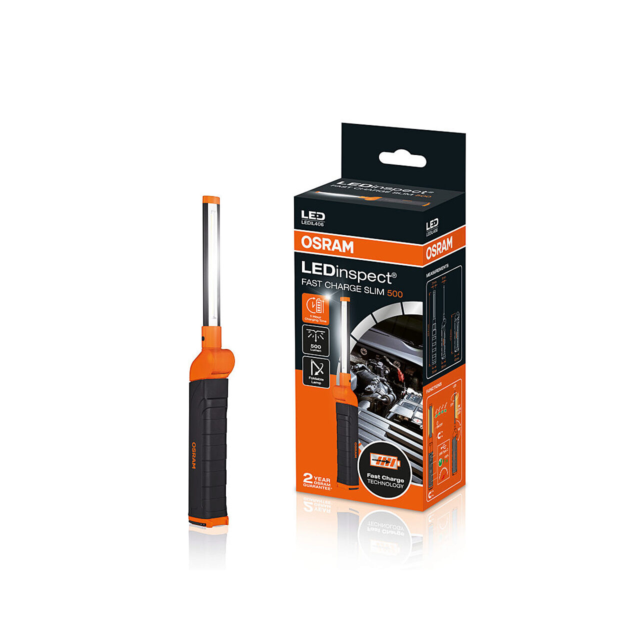 Designul ultra-subțire in combinație cu poziționarea in mai multe unghiuri - 270° răsucire și 180° flex- permite ca fasciculul de lumină să fie direcționat exact acolo unde este necesar. in timp ce unele lumini de inspecție durează pană la trei ore pentru a incărca, funcția de incărcare rapidă a FAST CHARGE SLIM 500 duce lampa de la 0% la 100% incărcare a bateriei in doar aproximativ 1 oră, oferind totuși o durată de viață lungă. Lumina de inspecție este reincărcabilă, iar indicatorul de nivel de incărcare integrat arată starea curentă a bateriei. Un cablu de incărcare USB de tip C și adaptorul de alimentare corespunzător sunt incluse in pachetul de livrare.