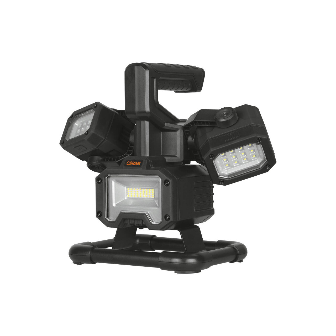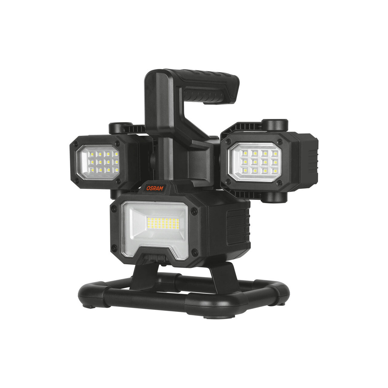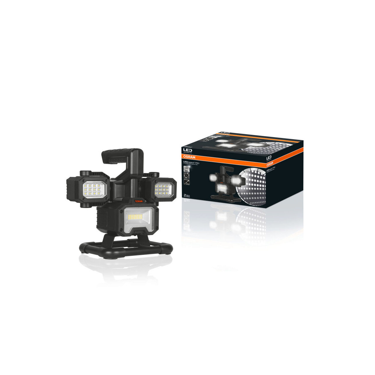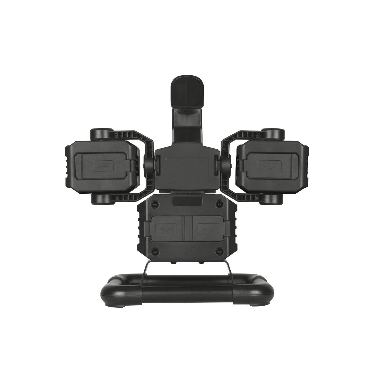 Cu trei funcții de iluminare, ridicat, scăzut și intermitent, 36 LED-uri (lumină principală) 2x12 LED-uri (lumină laterală), 10 Watt și pană la 6000 Kelvin și o baterie reincărcabilă cu litiu de 3,7 V 3600 mAh (lumină principală) / 3,7 V 1800 mAh Litiu baterie (lumină laterală) această lampă multifuncțională are o durată de funcționare pană la timp de funcționare de pană la 4 h (puternic) / 10 h (slab) / 12 h (intermitent). Cu clasa de protecție IP44 și IK06, acest far are protecție impotriva pătrunderii particulelor cu ∅ ≥ 1,0 mm și impotriva stropilor de apă. Această lampă de lucru LED multifuncțională cu un design extraordinar este un sistem de iluminat multidirecțional și multivariabil cu elemente individuale rotative, pivotante și chiar detașabile, are, de asemenea, o suprafață anti-alunecare și care respinge murdăria, magneți integrați pentru atașare pentru lucrul cu mainile libere și, prin urmare, este potrivită ideal ca lumină de lucru flexibilă pentru iluminarea compartimentelor motoarelor, caroseriei vehiculelor, garajelor și atelierelor.