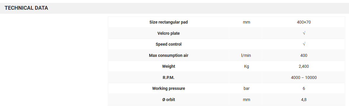 RUPES Pneumatic orbital sander 70X400mm velcro pad and 5mm orbit – SLP41AMAS. POLISAT SLP41A