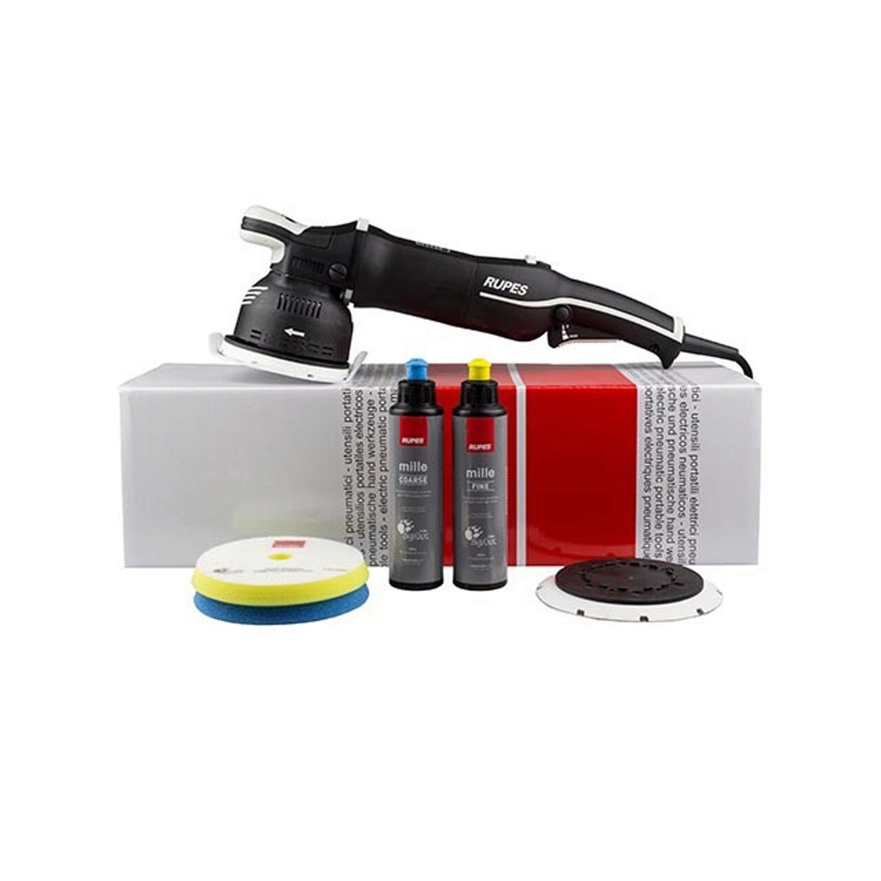 RUPES BigFoot LK 900E Mille Kitul Standard include toate sculele, produsele si padurile de care ai nevoie pentru a incepe imediat! Avand o rotatie fortata pentru o putere mai mare de corectie si o miscare inversa acelor ce ceas, RUPES BigFoot LK 900E Mille se comporta ca o masina orbitala, dar cu puterea de corectie a unei rotative. Cu padurile dedicate si pastele de polisare, RUPES BigFoot LK 900E Mille sistemul pentru miscare fortata este complet si iti ofera rezultate perfecte in timp relativ scurt!