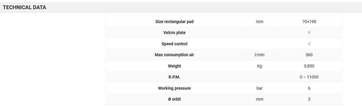 Masina de polisat orbitala Pneumatica pentru palmier 70X198mm ,extrem de bine echilibrata