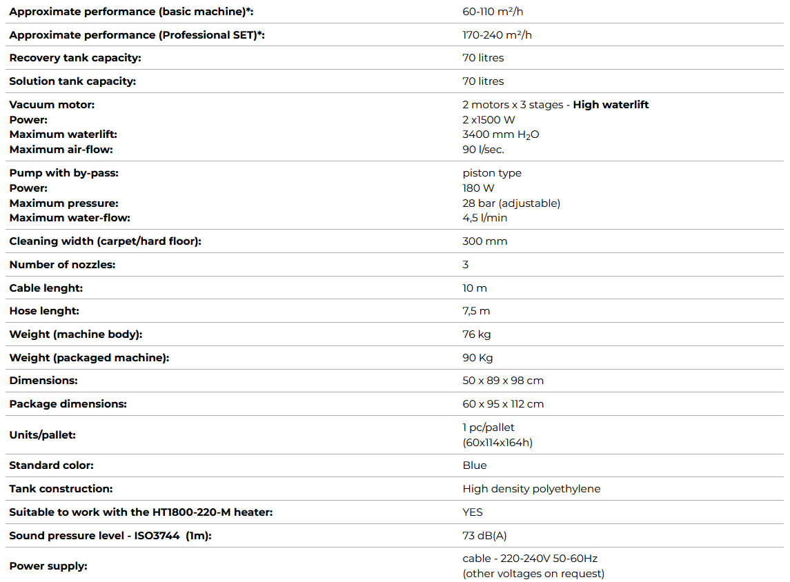 SET-ul GraceHP-Silent Professional se obține prin adăugarea la mașina GraceHP-Silent a unor opționale speciale, sporind performanța de curățare și asigurand: rezultate excelente de curățare, rapiditate și ușurință in operațiunile de curățare, timp scurt de uscare și remurdărirea lentă a covorului după curățare. . Chiar și covoarele murdare sunt curățate intr-o singură trecere și pot fi uscate intr-o oră. Toți factorii de curățare sunt combinați intr-un mod optim: acțiune chimică, temperatură, acțiune mecanică de periere, aspirare, timp.