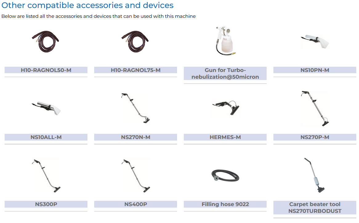 Posibilitatea de a utiliza mașina cu bagheta specială pentru perie rotativă NS270BRUSH, pentru a imbunătăți rezultatul curățării datorită acțiunii mecanice a periei cilindrice rotative. Bagheta poate fi folosită pentru curățarea prin extracție cu spumă sau curățarea prin injecție-extracție.