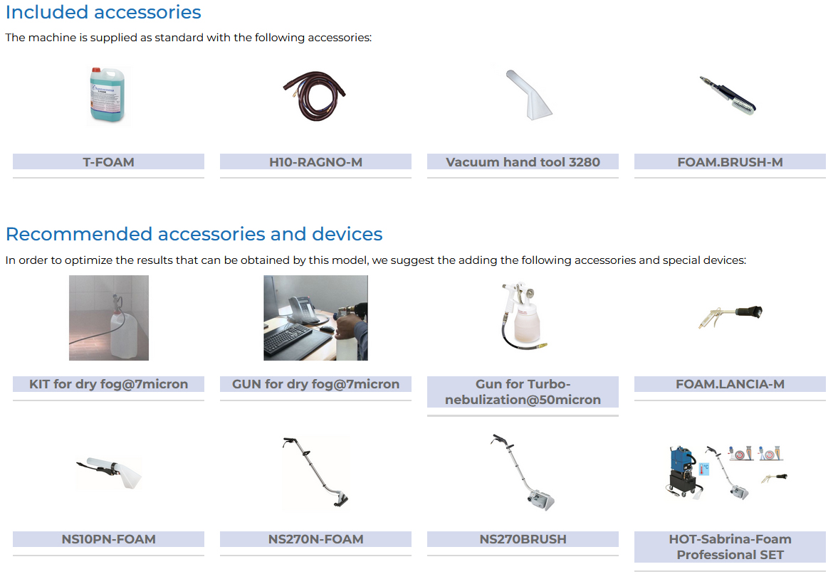 HOT-Sabrina-Foam poate fi folosit si cu instrumentul cu perie electrica NS270BRUSH, pentru a obtine un rezultat de curatare mai bun, datorita actiunii mecanice a periei cilindrice.
