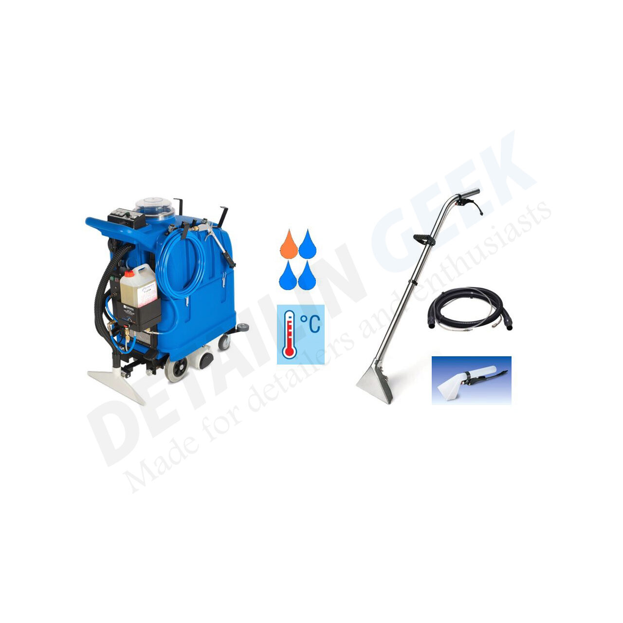 SET-ul Professional Powerful-Silent este obținut prin adăugarea la mașina Powerful-Silent a unor opționale speciale, sporind performanțele de curățare și asigurand: rezultate excelente de curățare, viteza și ușurința operațiunilor de curățare, timp scurt de uscare și remurdărirea lentă a covorului după curățare. Chiar și covoarele murdare sunt curățate intr-o singură trecere și pot fi uscate intr-o oră. Toți factorii de curățare sunt combinați intr-un mod optim: acțiune chimică, temperatură, acțiune mecanică de periere, aspirare, timp.