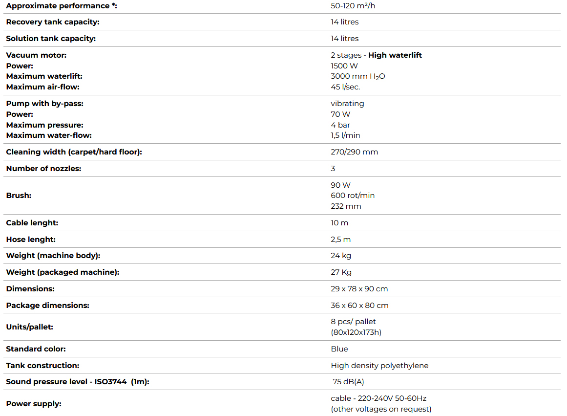Latime redusa (doar 29 cm) pentru curatarea profesionala chiar si a suprafetelor mici de covor si podele dure.