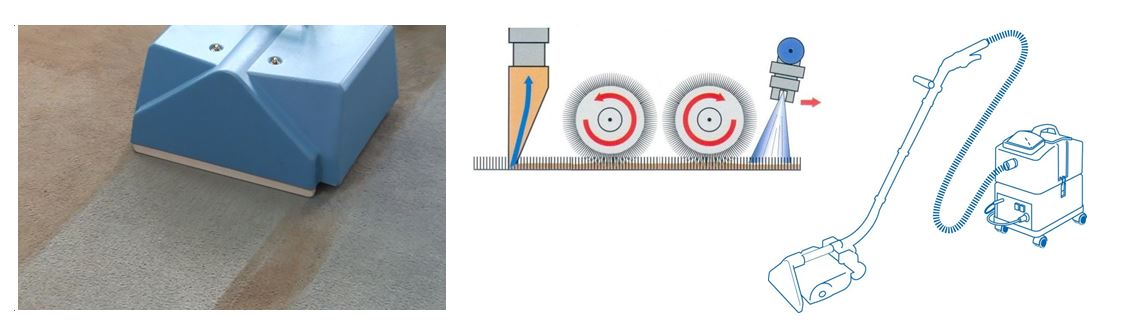 Bagheta speciala pentru curatarea covoarelor prin injectie-extractie, cu 2 perii cilindrice contrarotative.