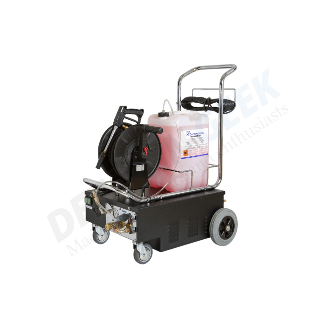 Substanța chimică pură este conținută in rezervorul său separat, avand un volum de pană la 25 de litri și este utilizat automat de mașină in cantitate controlată.