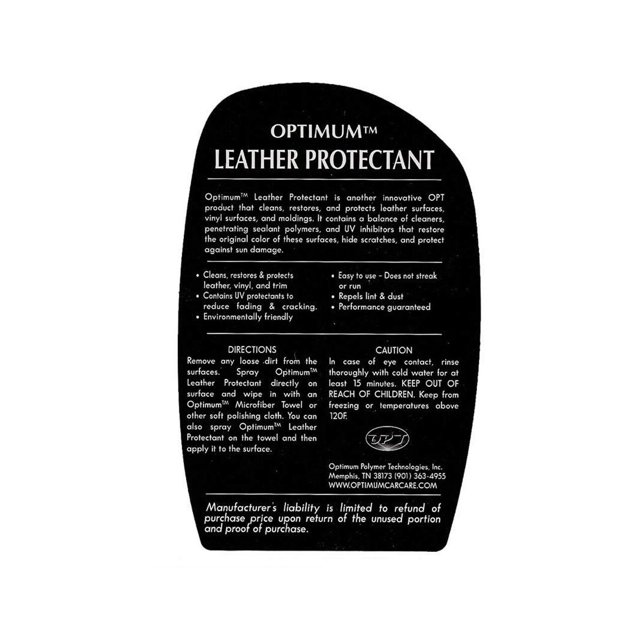 Aceste chimicale pretective sunt pierdute după o perioadă de timp de cateva luni. Optimum Protectant Plus curăţă aceste suprafeţe şi reface aceste chimicale protective adăugand şi protecţie UV acestor substanţe.Majoritatea protecţiilor de piele si vinilin de pe piaţă lasă in urmă un strat uleios lasand suprafaţa foarte lucioasă. Deoarece aceste produse nu sunt absorbite de suprafeţe, ele rezistă doar cateva zile şi atrag praful.