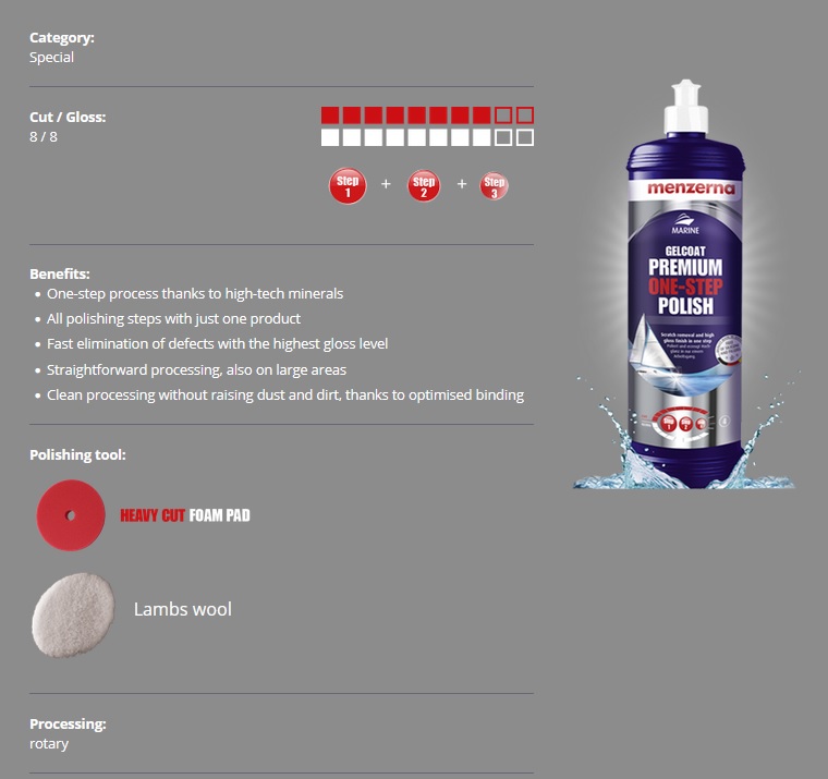 MENZERNA MARINE Gelcoat One Step Polish 1L - Pasta intr-un singur pas pentru Gelcoat