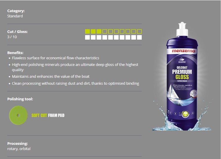 Finisajul suprem de oglindă, MENZERNA MARINE Gelcoat Premium Gloss oferă o finisare de excepție ,mai ales pe culori inchise de gelcoat. Se obaine o suprafață foarte alunecoasă și impecabilă, ceea ce iși oferă o imagine perfectă atunci cand navighezi.