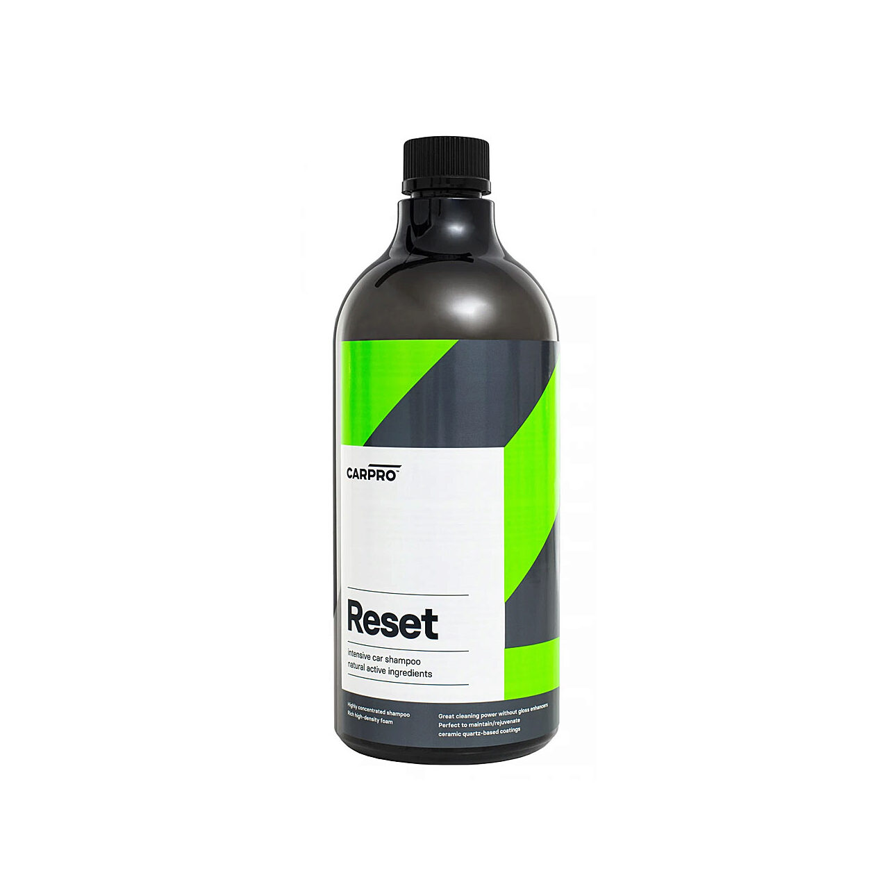 CAR PRO Reset Shampoo utilizează agenți tensioactivi inteligenți cu pH neutru, care prezintă puterea unui agent de curățare alcalin, rămanand in același timp pH-neutru in soluție, și ajută la descompunerea murdăriei și a filmelor de trafic pentru a menține hidrofobicitatea stratului. Combinat cu lubrifiere puternică și clătire ușoară, fără reziduuri, raport de diluție economic (500: 1) și acțiune de spumare ridicată.