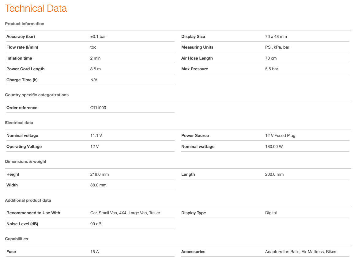 OSRAM Tyreinflate 1000 este un umflator digital rapid de anvelope cu un afișaj digital iluminat din spate pentru citiri ușoare și precise ale presiunii. Include o funcție de oprire automată pentru a obține exact presiunea dorită necesară pentru a vă umfla cu precizie anvelopele. Setarea automată a Tyreinflate 1000 este incredibil de ușor de configurat - doar rotiți butonul la presiunea dorită, faceți clic pentru a seta, apoi apăsați Start. Umflatorul se va opri automat odată ce presiunea corectă a fost atinsă.