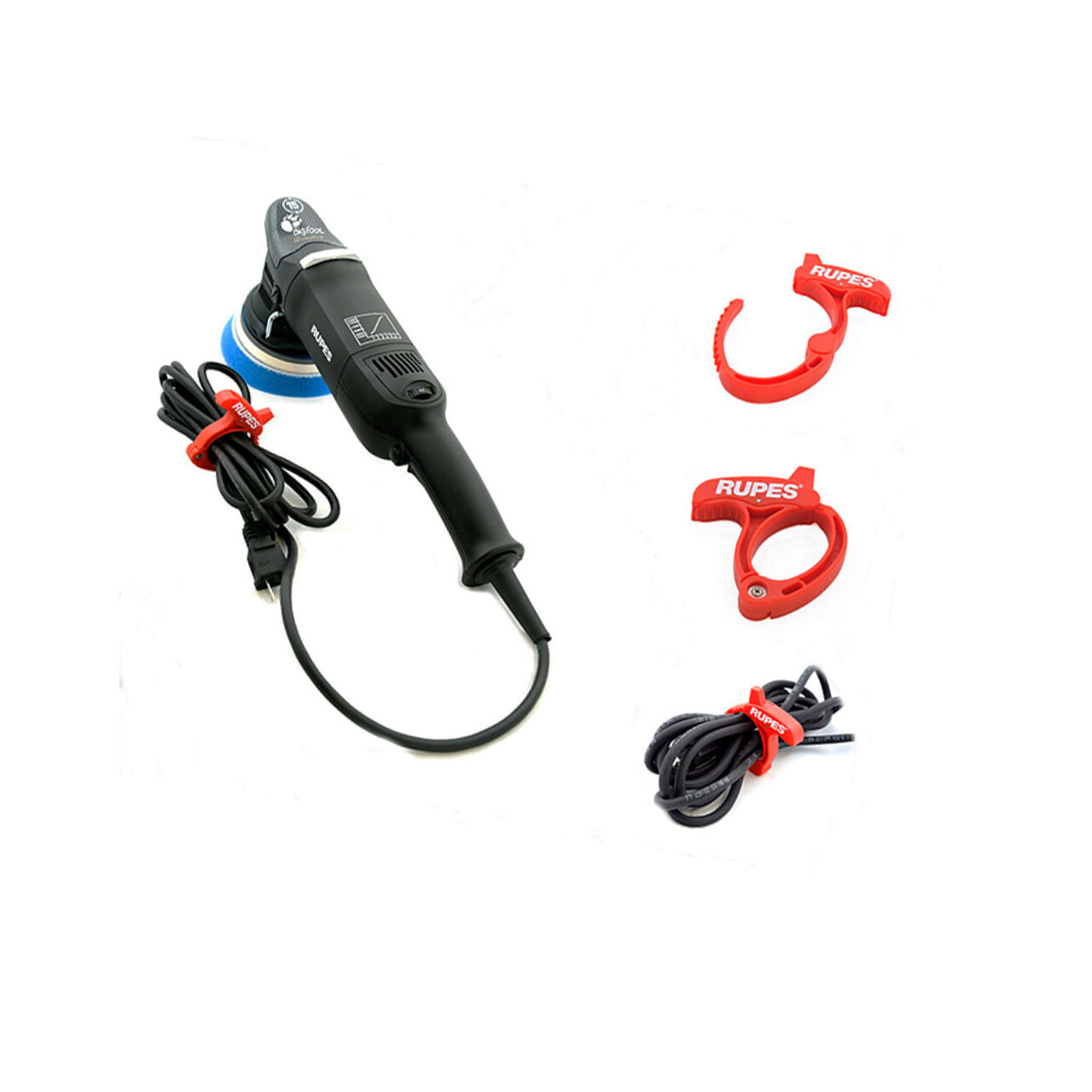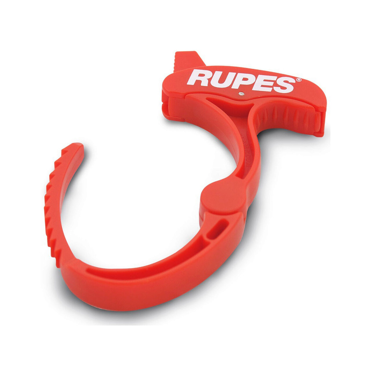 Dimensiune compactă, dar reglabilă pentru a se potrivi cu mănunchiuri mari sau mici de cablu (pană la 50 mm/2”), culoarea roșu aprins și logo-ul RUPES imprimat fac clema de cablu foarte vizibilă, astfel incat să nu se piardă in atelier. Atunci cand nu este folosit pentru a gestiona cablurile de la mașinile de polisat RUPES, clema de cablu este, de asemenea, o modalitate excelentă de a agăța un prosop din microfibră de la centură sau de a-l folosi pentru a vă asigura cheile.