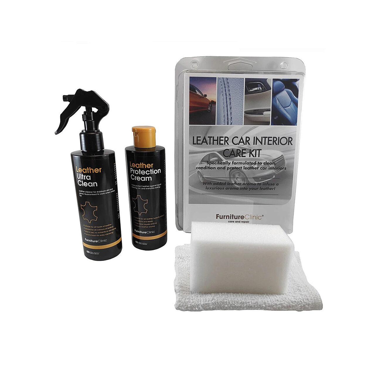 FURNITURE CLINIC Leather Car Interior Care KIT - Kit pentru intretinerea interiorului 250 ml.