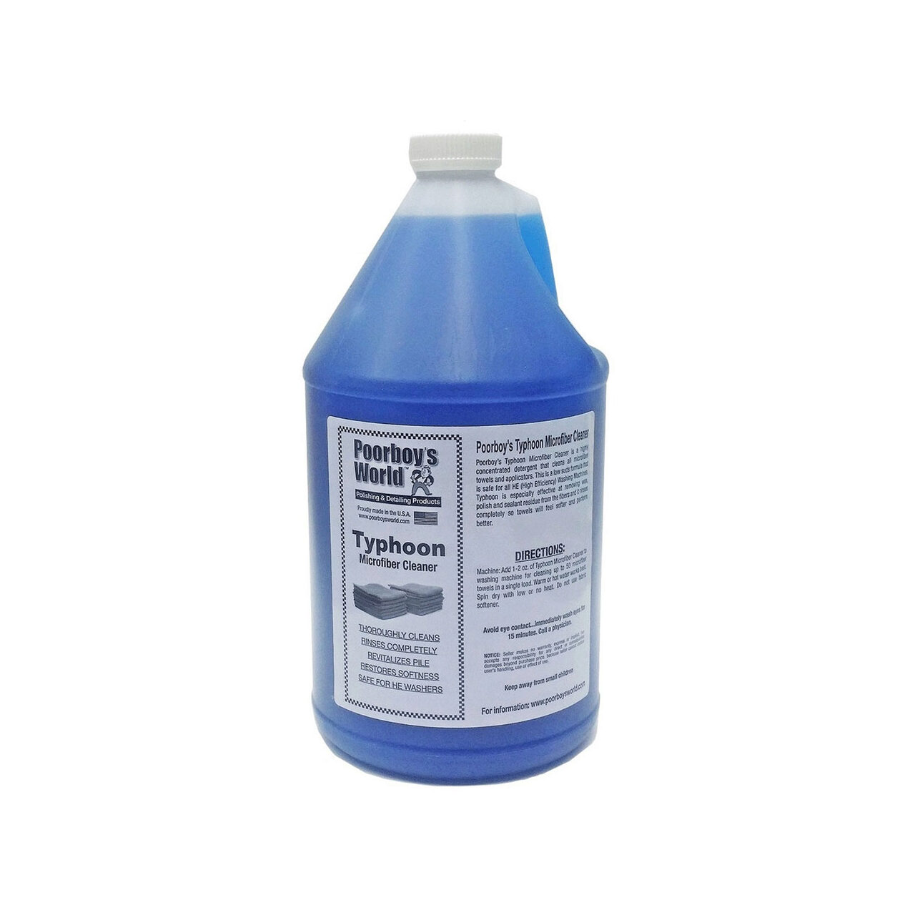 Poorboy’s World Typhoon Microfiber Cleaner este un detergent foarte concentrat care curăță toate prosoapele din microfibră, bureții din microfibră și aplicatoarele din microfibră. Aceasta este o formulă cu puțină spumă care este sigură pentru toate mașinile de spălat HE (cu eficiență ridicată). POORBOY'S WORLD Typhoon Microfiber Cleaner este deosebit de eficientă in indepărtarea reziduurilor de ceară, polișului și sealant-urilor din fibre și se clătește complet, astfel incat prosoapele să se simtă mai moi și să aibă performanțe mai bune. Detergentul obișnuit de rufe nu este formulat pentru a sparge și dizolva ceara, sealant-ul, compusul și reziduurile de polișare găsite in prosoapele din microfibră care sunt utilizate pentru detailing.