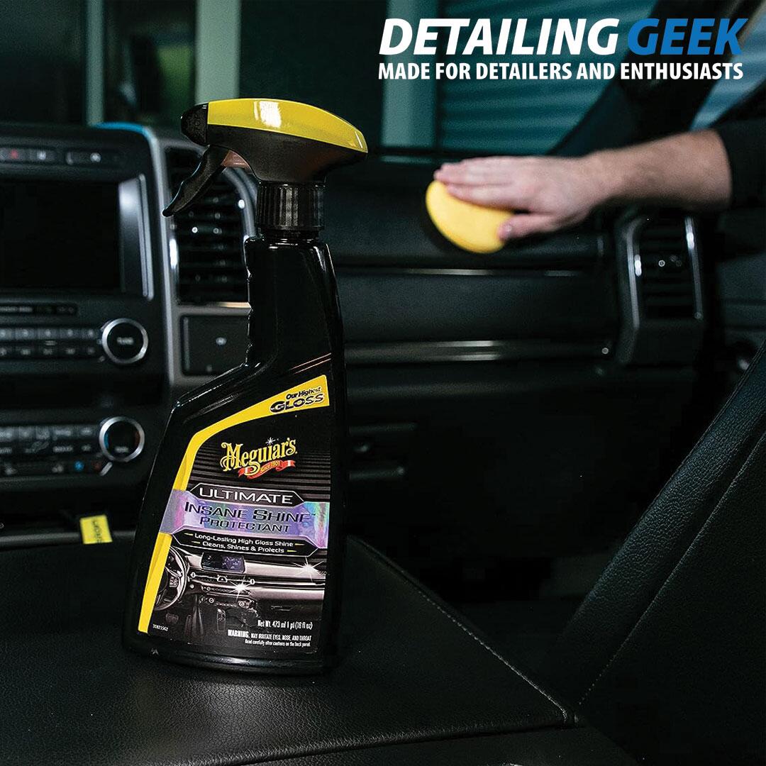 Meguiar's Ultimate Insane Shine Protectant creează un finisaj lucios bogat, întunecat și durabil pe suprafețele nevopsite din vinil, plastic și cauciuc. Acest protector premium se răspândește cu ușurință, fără dungi și creează o strălucire întunecată, lucioasă, care îmbunătățește aspectul suprafețelor precum tablourile de bord, panourile ușilor, consolele, anvelopele, protectiilor pentru roți și ornamentele exterioare.