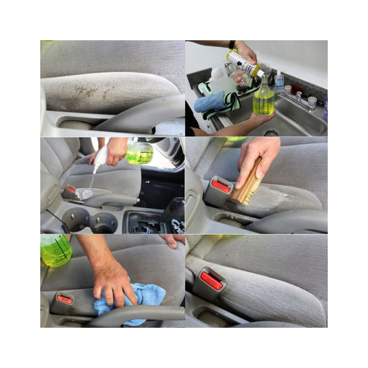Pulverizați suprafața și frecați cu o perie de tapițerie.