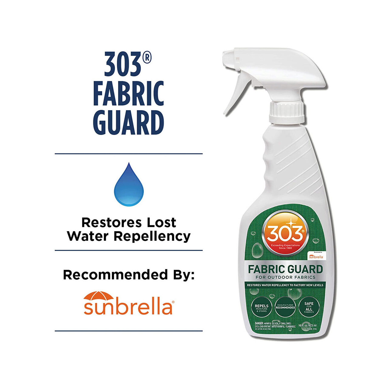 303® Fabric Guard păstrează țesăturile proaspete, moi, colorate și respirabile ... toate adăugand in același timp un strat puternic pentru a respinge apa și a preveni cele mai grave pete. Folosiți-l pentru a menține covoarele curate și pentru a acoperi fără defecte. Puteți chiar să-l pulverizați pe materialul textil de la decapotabile, pentru a preveni absorbția. Atunci cand este aplicat pe țesături curate și uscate, 303® Fabric Guard restabilește pearmeabilitatea pentru pete la fel ca in fabrică. Păstrați toate țesăturile preferate curate pentru anii următori.