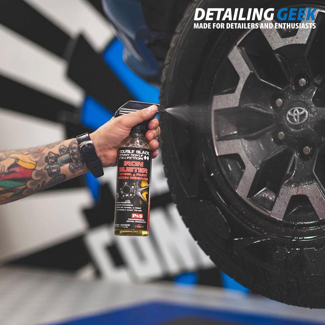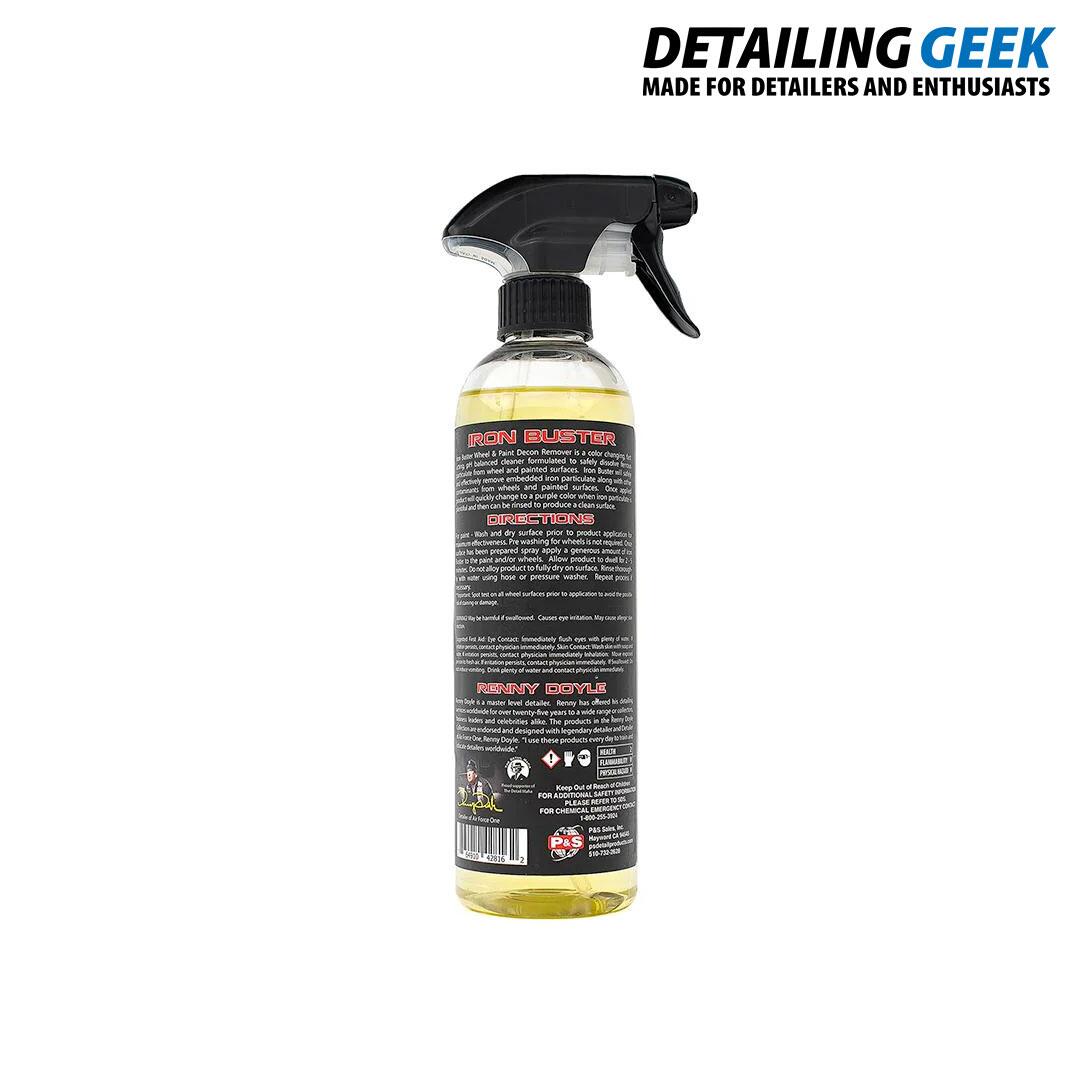 P&S Iron Buster Wheel & Paint Decon Remover este o soluție de curățare cu pH neutru, cu acțiune rapidă care își schimbă culoarea în contact cu particulele feroase, formulat pentru a dizolva în siguranță particulele feroase de pe roți și suprafețele vopsite.