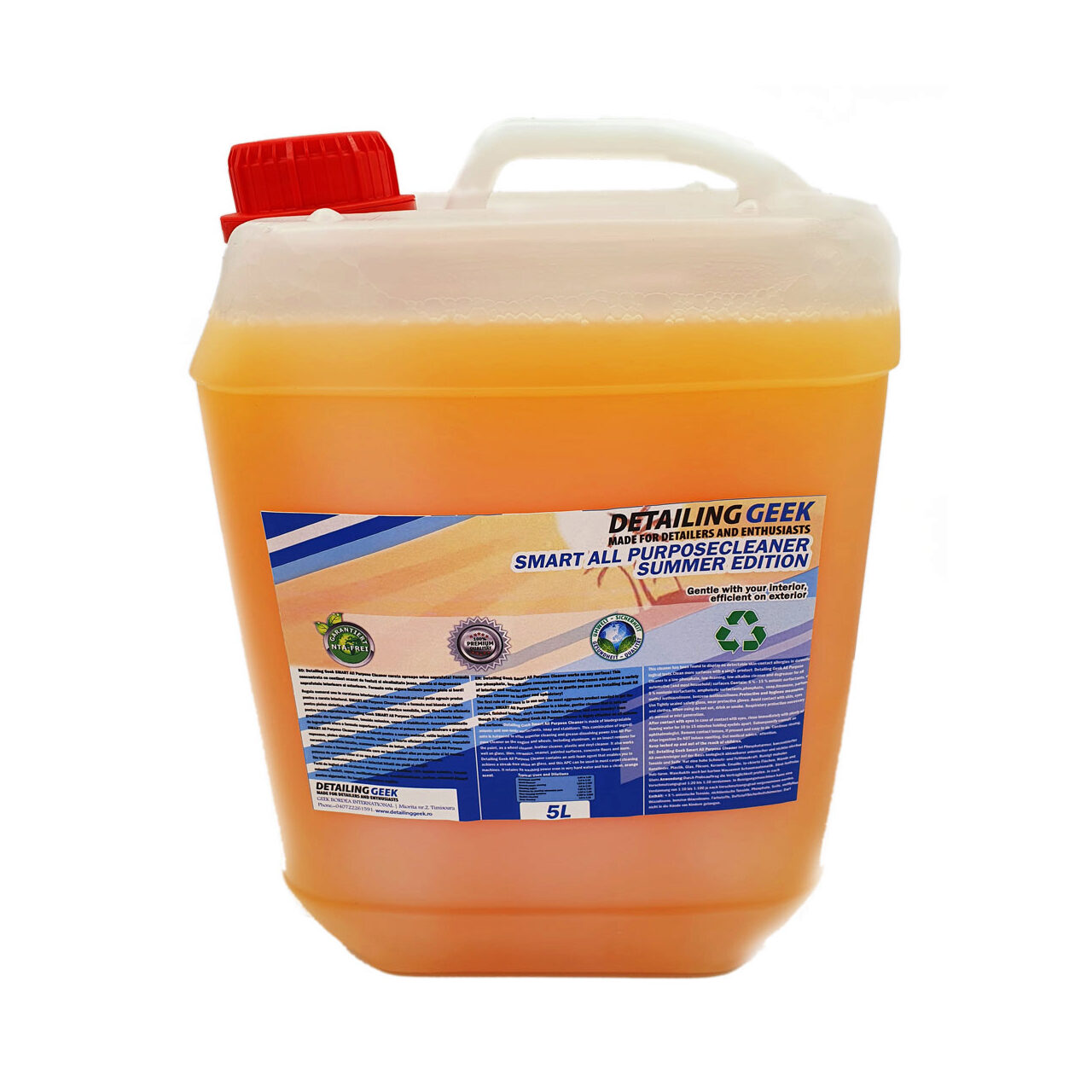 Detailing Geek SMART All Purpose Cleaner este o formula biodegradabila din tenside anionice, tenside neionice, sapun si stabilizatori. Aceasta combinatie de ingredienti ofera o formula superioara de curatare si putere mare de dizolvare a grasimilor.