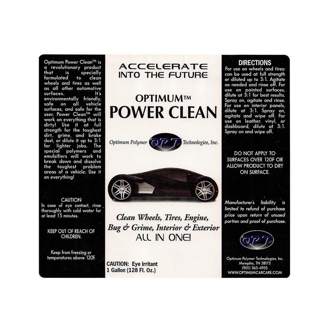 - Optimum Power Clean™ inlocuieşte mai multe produse: curăţător pentru bord, pentru jante si anvelope, degresant de motor, curăţător de insecte şi asfalt, si chiar curaţator de piele.Imaginează-ţi caţi bani poţi salva cu un singur produs!