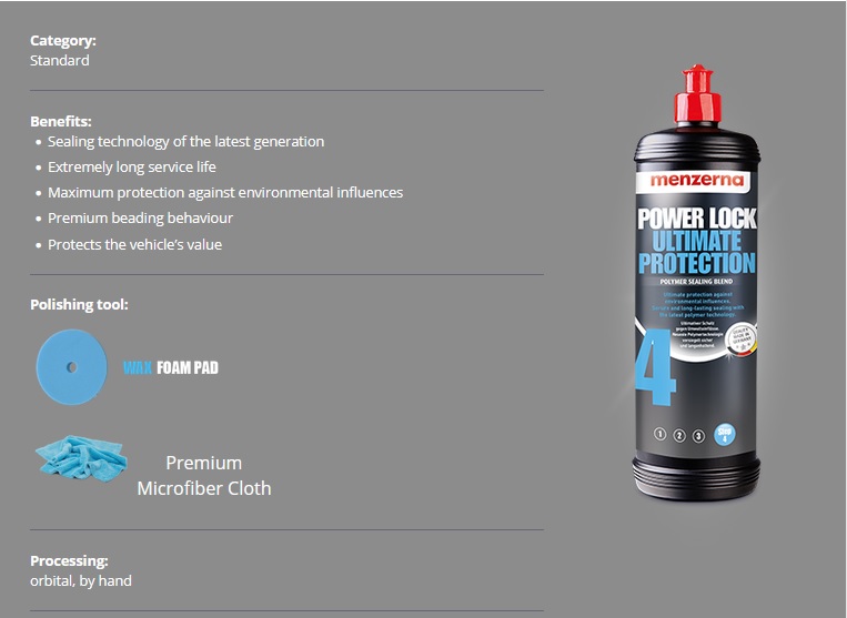 Protecția sintetică acționează ca un material de etanșare durabil, protejand in mod fiabil impotriva influențelor mediului, cu un efect de beading de neegalat și un luciu profund.