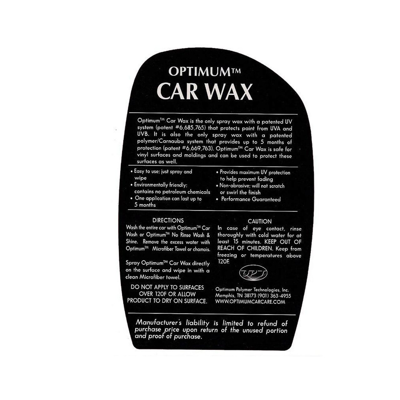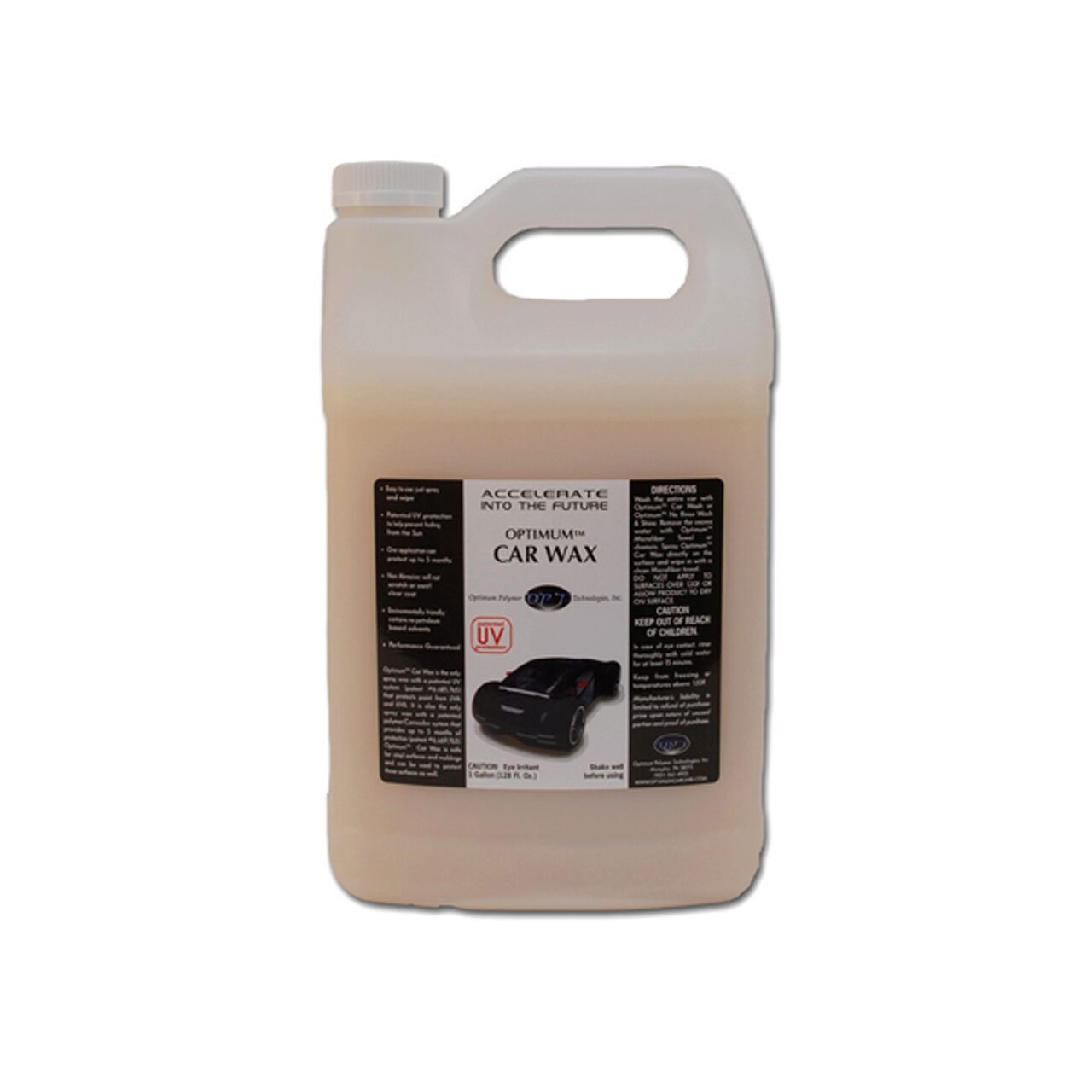 Optimum Car Wax este singura ceară lichid care oferă protecția și durabilitatea unei ceare solide și protecție impotriva ultravioletelor. O combinație ceară Carnauba de cea mai bună calitate, polimeri de sigilare și inhibitori de ultraviolete, formează strat de protecție pe suprafața lacului și il protejează impotriva soarelui și a elementelor nocive ale mediului, oferindu-i o protecție de pană la 5 luni