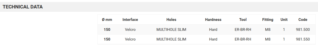 981.500 RUPES , Taler – 150 mm Velcro Multihole Hard M8