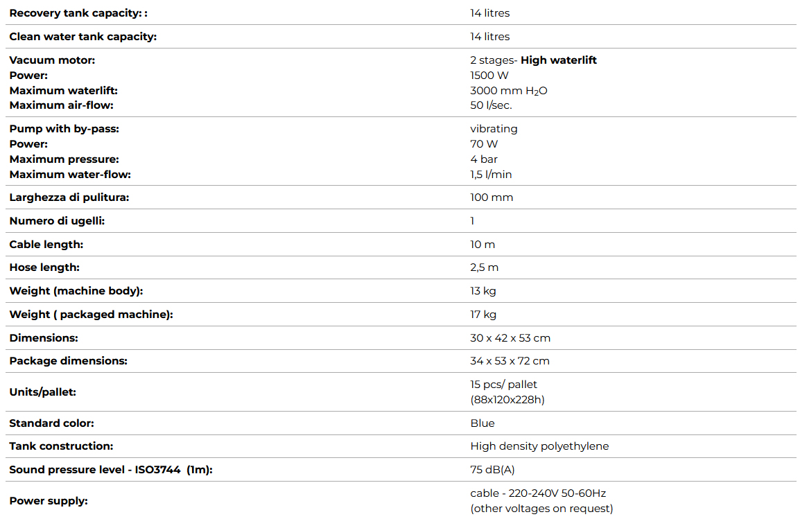 SW15 CART este o mașină profesională de injecție-extracție potrivită pentru curățarea tapițeriei și a interiorului mașinilor. in ciuda dimensiunilor sale mici, SW15 CART este potrivit pentru uz profesional și este indicat și pentru munca grea.