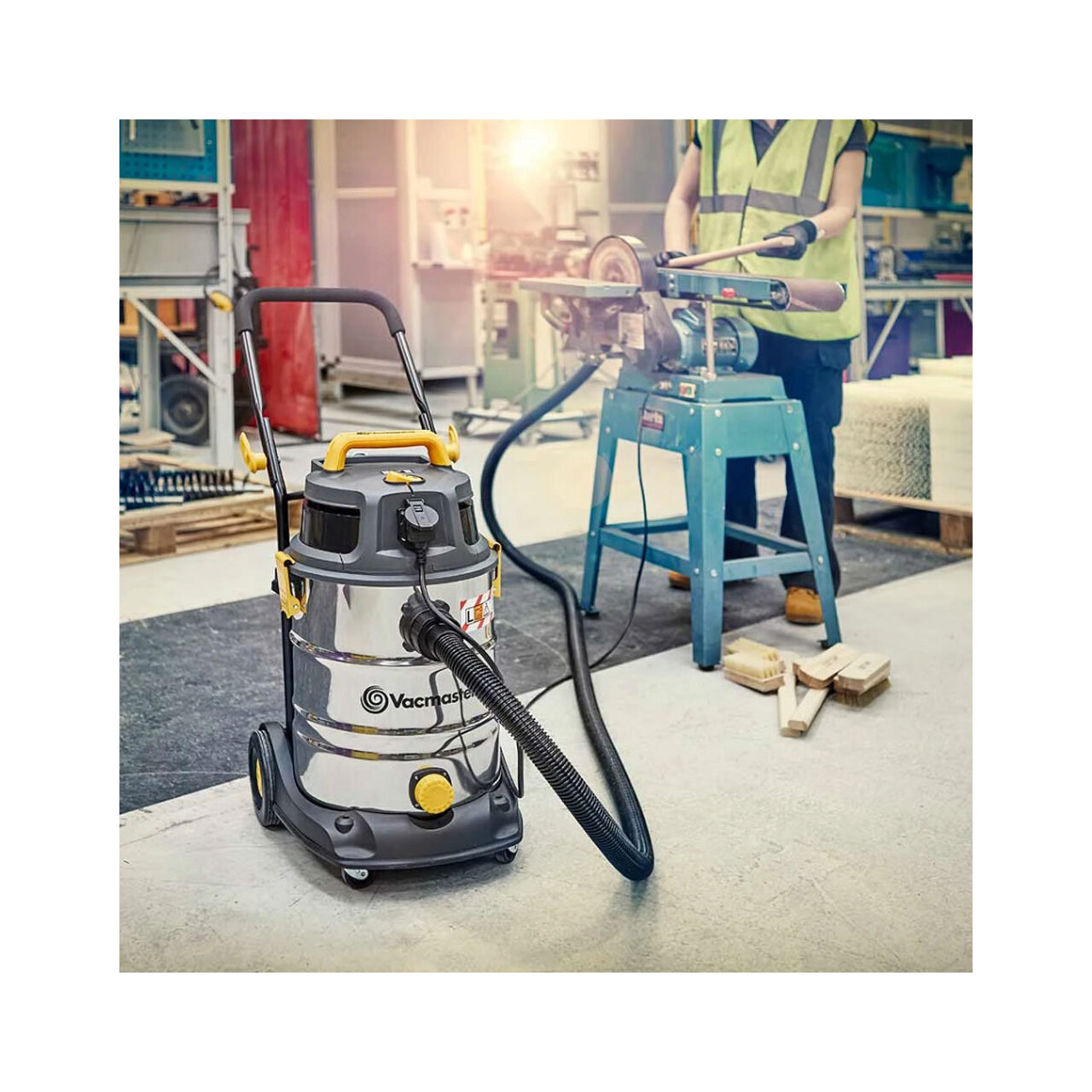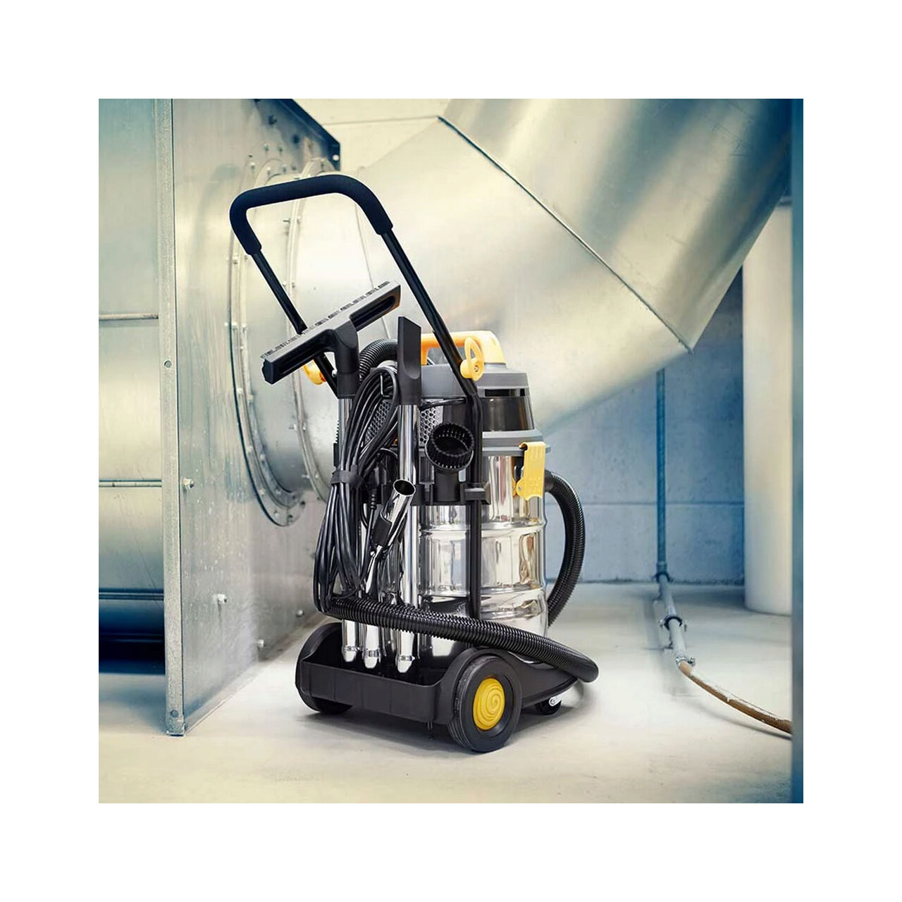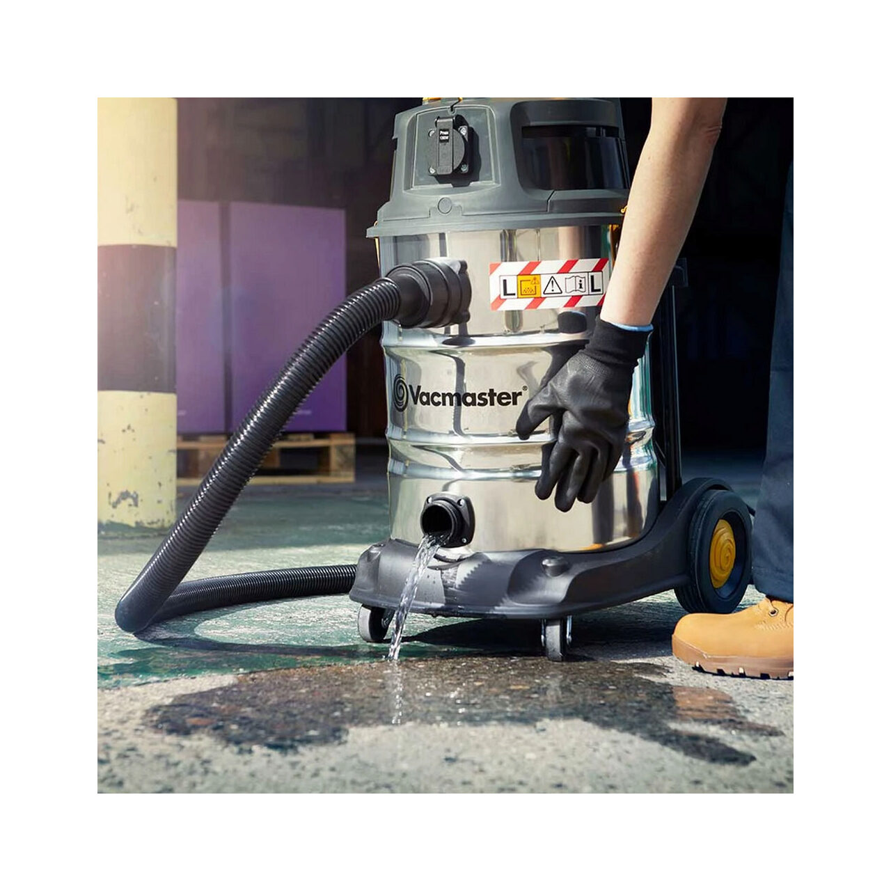 Special conceput pentru uz industial, ASPIRATOR VACMASTER vine echipat cu o cuva de 30L de INOX pentru colectia mizeriei, extensii de inox, control al aerului, lungimea furtunului este de 3.5M si cablu de alimentare de 5M ce iti ofera 9.5M pentru a ajunge in cele mai indepartate locuri.