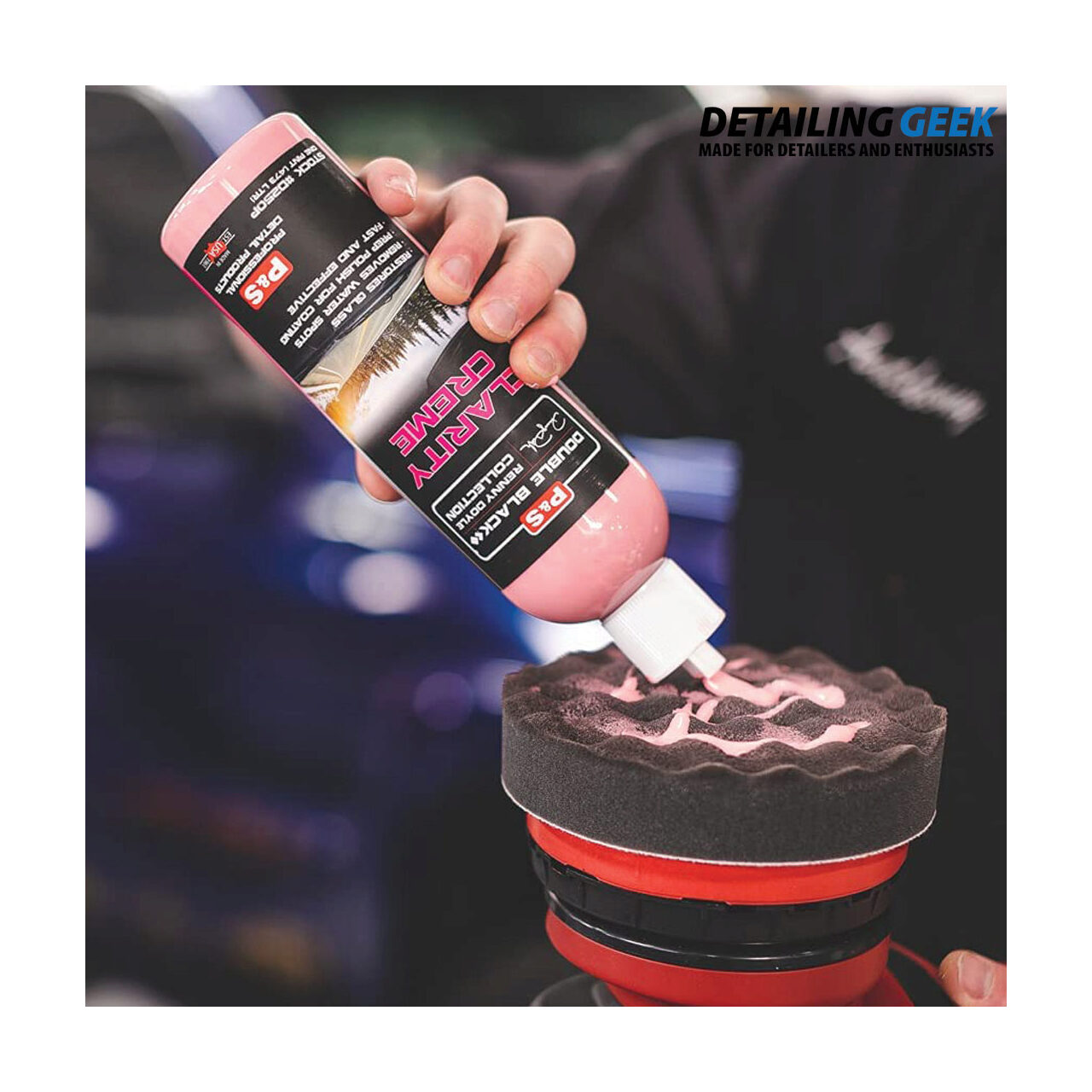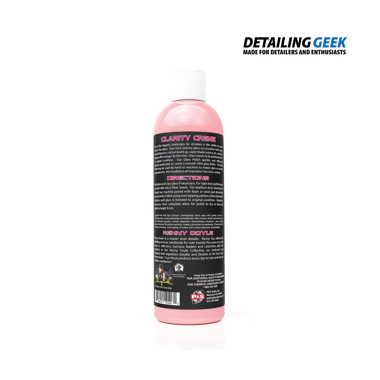 P&S Clarity Creme Glass Polish elimină rapid și eficient particulele pentru a crea un finisaj neted de sticlă OEM. P&S Clarity Creme poate fi folosit manual sau cu mașina pentru a restaura sticla sau utilizat în pregătirea instalării protectiei de sticlă P&S Inspiration VUE.