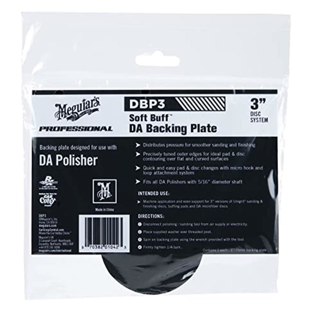 Designul avansat distribuie presiunea uniform pentru eliminarea și finisarea optime a defectelor, in timp ce micro atașament cu carlig și buclă se lipește ferm atunci cand este necesar, dar permite și schimbarea rapidă și ușoară a discurilor. Marcajul indicatorului de rotație permite utilizatorului să monitorizeze rotația plăcii de suport și să maximizeze rezultatele in timpul lucrului. Ideal pentru utilizare cu Meguiar’s MT300, dar DBP3 se va potrivi și cu toate mașinile de lustruit cu ax cu diametrul de 5/16”. Talerul DA de 75 mm Meguiar va funcționa, de asemenea, cu discuri din microfibră DA de 75 mm Meguiar (DMC3 și DMF3).