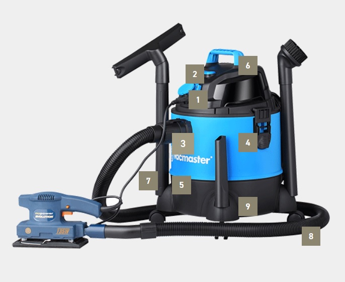 Aspiratorul umed /uscat Vacmaster Multi 20, cu priza electrică, este un aspirator eficient multifuncțional construit pentru a face față lucrărilor dificile din casă, garaj sau atelier.